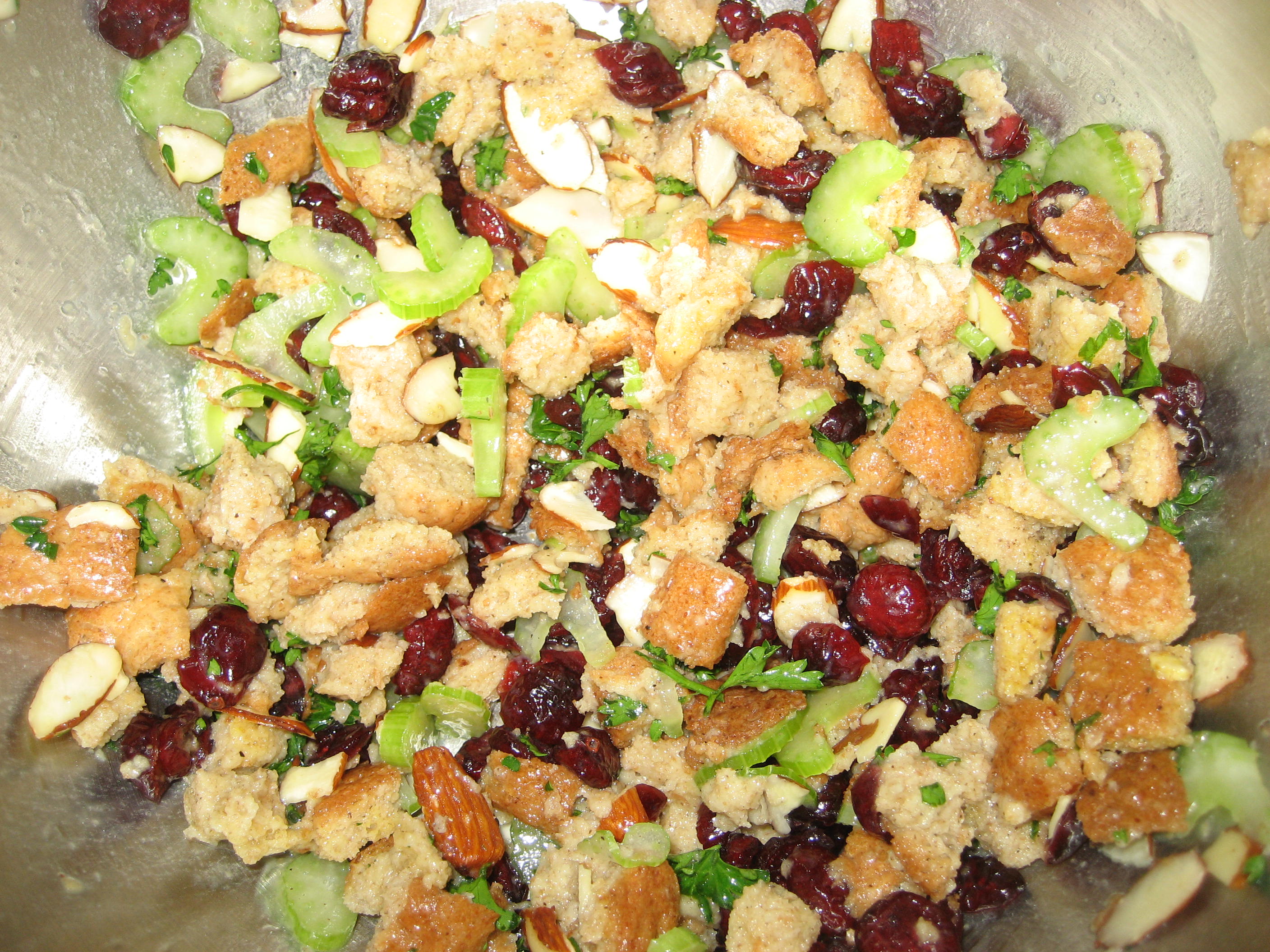 okay, so a couple of notes on the ingredients list. i’ve found that this recipe is best with everything bagels used for the bread cubes. trust me on this, i’ve used everything from light wheat bread to dried italian, and everything bagels are the way to go. also, the red pepper flakes are kind of optional. they do add a spicy kick, which seems a little odd with this dish but personally, i love it. BUT if you are anti-hotness (you fool) then leave it out, cause it’s spicy. and i’ve tried this recipe with calvados, cognac, brandy AND apple juice, and believe it or not, alcohol lover that i am, i prefer the apple juice to the rest.