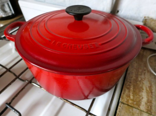 I love making this in my round Le Creuset French oven, not only because the results are stellar, but also because it’s just such a beautiful piece of cookware. Shout out to the Director of Indulgence for the excellent gift! I’m sure it would also do well (and appear all the more authentic) in a tajine, but any heavy pot with a lid will do just fine.