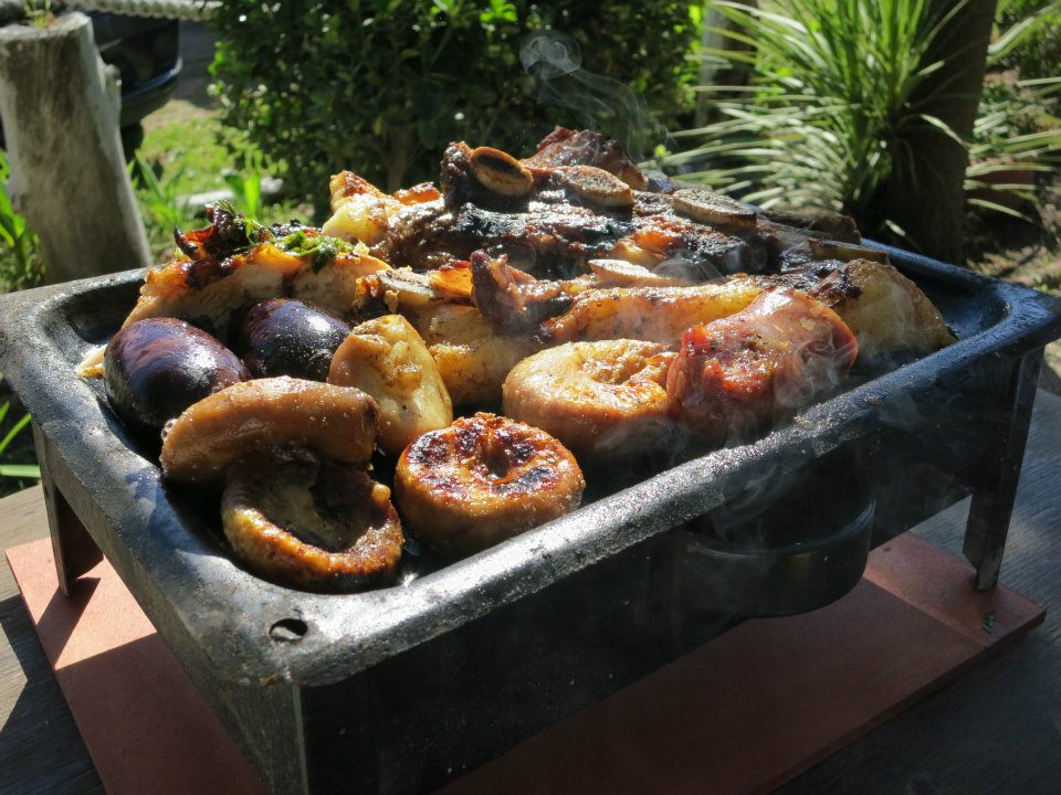 One of my favorite meals, and a must for anyone traveling here, is ordering some version of parillada para dos: literally, grill for two (or four, or six, etc). A small charcoal grill is brought to your table sizzling with mouth-watering smells and piled with succulent cuts of beef, pork, chicken, chorizo, morcilla (blood sausage), riñon (kidneys) and sweetbreads.