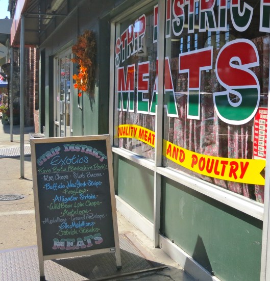 The Strip District – or The Strip, as it’s commonly known – is not, as my husband assumed, an area full of gentlemen’s clubs. Sheesh. It’s a half square mile strip bordering the Allegheny River full of restaurants, bars, antiques shops, craft stores, old factories and warehouses converted to lofts, and my focus for the day: fresh produce, meat, fish, baked goods and ethnic food markets.