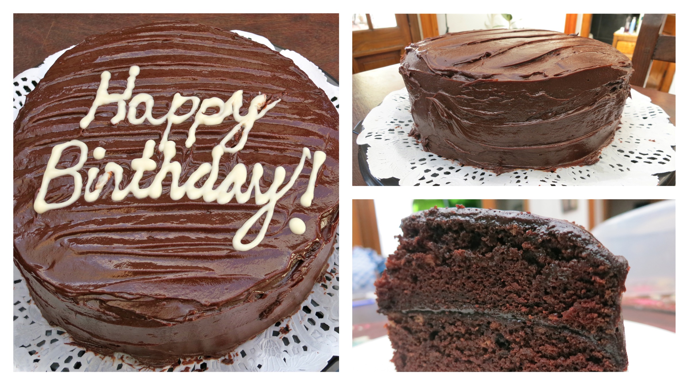 Esta torta es rica y extrafina. Es un pastel redondo de chocolate con dos niveles, cubierto con más chocolate. Muy húmedo, muy chocolatoso y muy delicioso. Rinde 10 porciones. Puede leer la critica de Feels Like Chocolate acá.