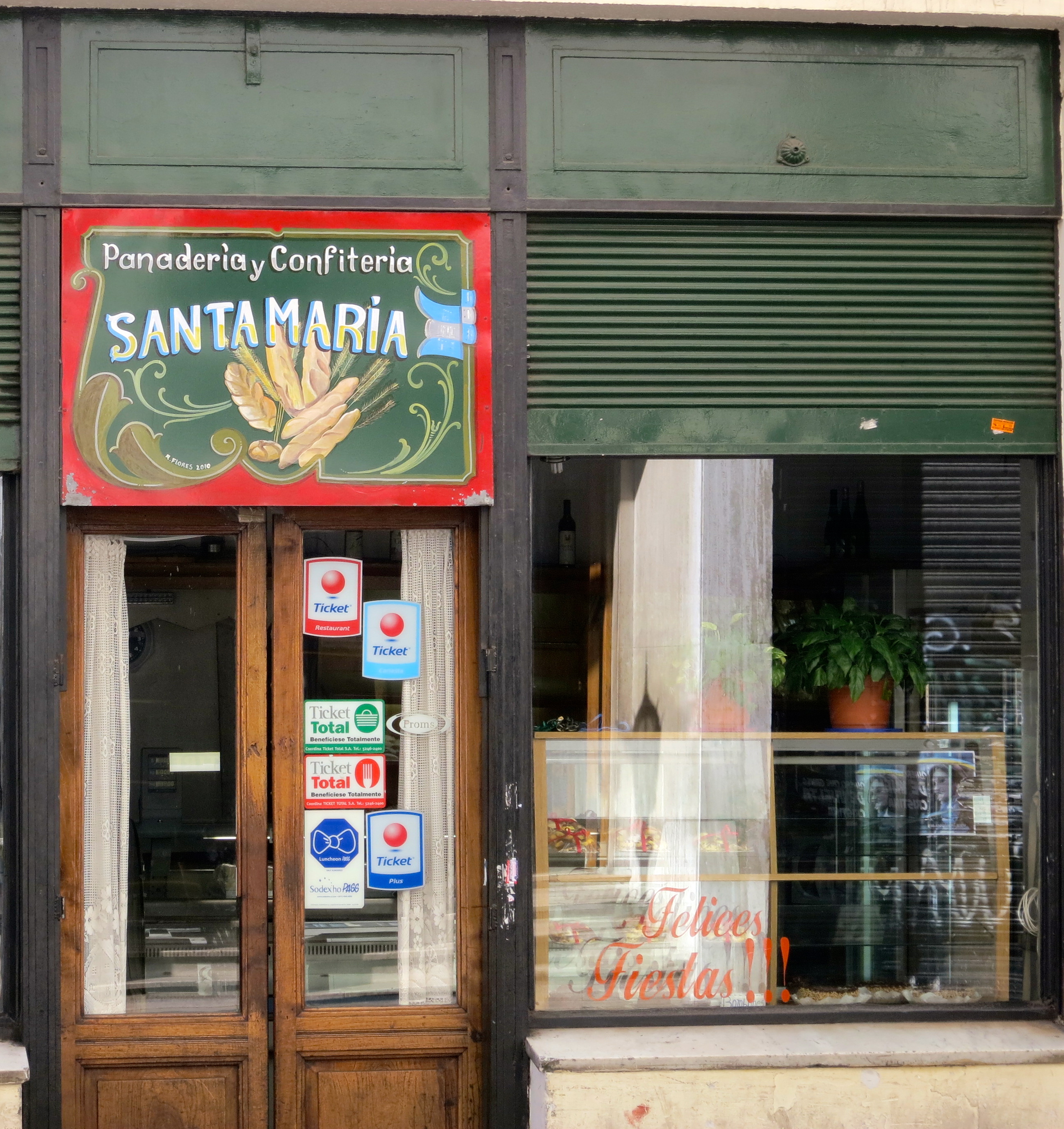 Panadería y Confitería Santa María is an unassuming shop on Defensa with an ever-present display of delicate alfajores in the window…and not a whole lot else. Unless you count the decorations for Christmas, New Year’s and Easter that stay in the window year-round. But hey, no judgement. You’ll be willing to overlook that when you step inside on a weekend morning, look to the left, and find a wall full of pastries of every shape, color and size. There’s a wide variety of medialunas, a selection of churros, and other breakfast delights stuffed with membrillo, some sort of cheesecake-like topping that I have yet to identify, and of course, dulce de leche. You can select your own mix of a dozen sweet treats for $24 pesos.