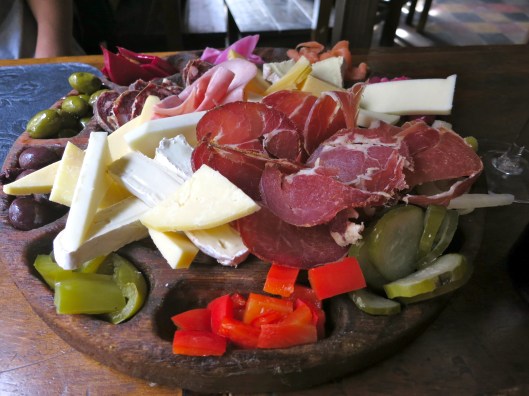 On our latest visit, we splurged on the Gran Tabla Territorio. It’s basically a little bit of everything they have to offer: smoked boar, salmon and venison, different cuts of ham and salami, six different cheeses, a huge variety of pickled vegetables, roasted potatoes, sautéed beef and mushrooms…oh, it all makes me so happy.